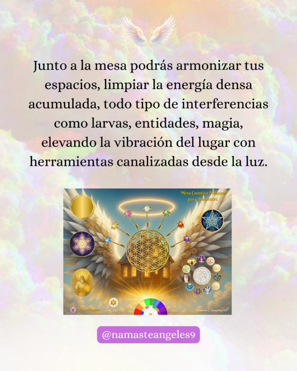 Hoy tengo la felicidad de compartirte esta poderosa herramienta de luz que canalice con la guía del Arcángel Metatrón para limpiar y armonizar nuestros espacios. Ya que es muy importante no solo mantener nuestra energía limpia sino también la de nuestro hogar, negocio, trabajo, vehículos, ellos se cargan con las energías de las personas y esa energía va quedando acumulada haciendo que el lugar luego manifiesta esa densidad siendo un lugar donde no me siento en paz o se rompen cosas, se bloquean nuestros proyectos, no me siento bien estando en el lugar, me cuesta dormir entre algunas de las cosas que pueden manifestarse. Junto esta herramienta aprenderas todas las señales, beneficios y tips sobre un ambiente limpio y armónico. Dos clases donde te brindare mucha información y aprenderás a utilizar y activar las herramientas de la mesa para realizar sesiones para vos y para otros. No se requieren conocimientos previos solo un péndulo.